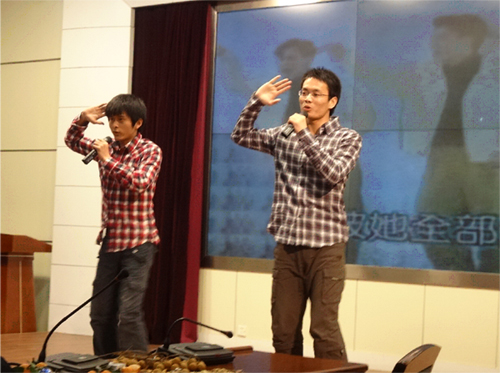 全局各部門職工精心準(zhǔn)備了豐富多彩的文藝節(jié)目。其中,我院青年職工胡凱峰和胡慶表演了歌舞節(jié)目《失戀陣線聯(lián)盟》,歡快的歌聲配上動感的舞蹈博得眾人喝彩,在聯(lián)誼會伊始便將氣氛推向高潮。