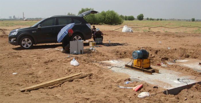 照片1 內(nèi)蒙古鄂爾多斯煤化工項(xiàng)目樁基礎(chǔ)動(dòng)力特性測(cè)試