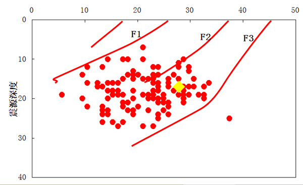 圖1 蘆山地震余震分布及震源深度圖(M>3.0級)
