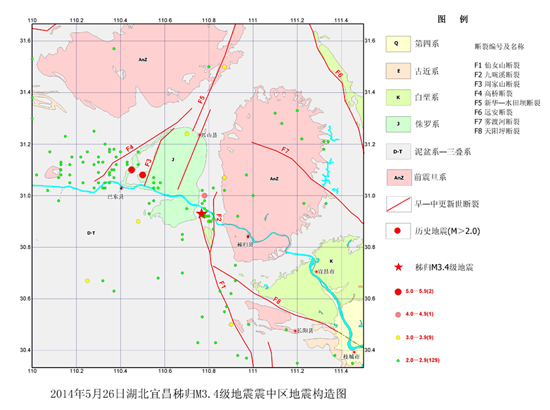 2014年5月26日湖北省宜昌市秭歸縣M3.4級地震震中區地震構造