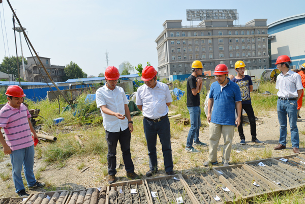 我院羅登貴副院長、蔡永建副院長及相關(guān)技術(shù)人員陪同安全生產(chǎn)檢查組,并介紹了府河大橋工程、華電集團華中總部研發(fā)基地項目現(xiàn)場鉆探、土層取樣和剪切波測試情況。