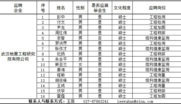 地點:中國地震局地震研究所(湖北省地震局)科研樓6樓(參加面試人員可乘522路、587路、606路等公共汽車到茶港小區站下車)。