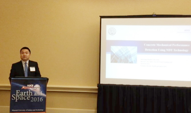 2016年4月11日至15日,副院長(zhǎng)馮謙高級(jí)工程師受美國(guó)土木工程師協(xié)會(huì)動(dòng)力學(xué)與控制分會(huì)(ASCE Dynamic and Control Committee)邀請(qǐng),赴美國(guó)Orlando擔(dān)任2016 Earth and Space國(guó)際會(huì)議結(jié)構(gòu)診斷與控制分會(huì)主席,并作題為“Detection of the Secondary Pouring Interface in Concrete Structure Using Piezoceramic Based Smart Aggregates”的學(xué)術(shù)報(bào)告。