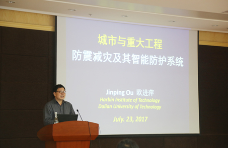 同日下午,歐進萍院士還在湖北省地震監測中心報告廳,作了題為“城市與重大工程防震減災及其智能防護系統”的精彩報告,分別從地震災害與防御、結構振動控制與高性能預制裝配式結構、結構健康監測與全壽命性能設計與維護、土木工程變革與發展四個主要部分展開論述,歐院士高屋建瓴,對防震減災、工程抗震、健康監測乃至整個大土木領域進行了系統歸納、全面總結和方向指引。歐院士以其淵博的學識、深厚的文化底蘊、妙語連珠的演講風格征服了全場,得到了全體參會人員經久不息的掌聲。在現場提問環節,我院青年科技工作者踴躍提問,就感興趣的科學問題、工程需求及相關產業發展方向尋求歐院士的指導,歐院士用深入淺出的語言,一一耐心地進行了答疑解惑。此次報告由中國地震局地震研究所所長姚運生研究員主持,所相關科研人員及全體研究生參加了本次報告。