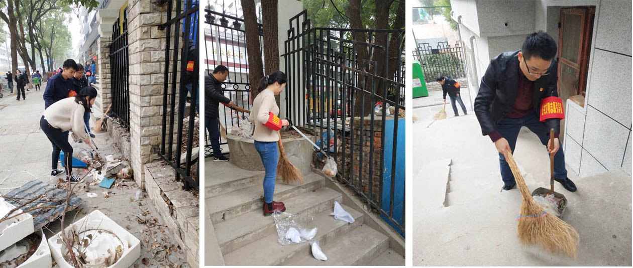 下午14點15分,在茶港社區小洪山工作站站長康主任的帶領下,工程院支部黨員前往水果湖茶港社區報到,領取了環境清掃任務,然后積極投身到了東三路3號水一小教室宿舍的清潔勞動中。勞動過程中,大家將馬路邊、樓棟周邊的廢棄雜物、建筑垃圾、生活垃圾進行了清掃,不放過一個死角。清掃完畢后社區衛生環境得到了大大的改善。工程院黨員在勞動過程中充分發揚了服務群眾、甘于奉獻的志愿者精神。