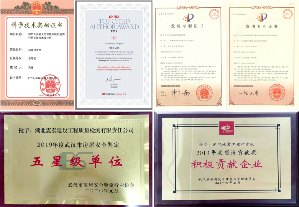 武漢工程院針對(duì)如下領(lǐng)域開展了前沿探索:圍繞壓電智能感知與評(píng)估關(guān)鍵技術(shù)研究了壓電應(yīng)力導(dǎo)波的傳播與衰減規(guī)律,探明了結(jié)構(gòu)局部性態(tài)的壓電智能檢測(cè)機(jī)理,發(fā)展了其對(duì)各類工程服役病害的實(shí)時(shí)監(jiān)測(cè)和安全評(píng)定,經(jīng)國家一級(jí)科技查新機(jī)構(gòu)及湖北省土木建筑學(xué)會(huì)鑒定達(dá)到國際先進(jìn)水平;在產(chǎn)學(xué)研的項(xiàng)目驅(qū)動(dòng)下,圍繞多芯光纖多參量一體化感知制品與監(jiān)測(cè)系統(tǒng)探究了多物理參量可區(qū)分測(cè)量的多芯光纖傳感機(jī)理,研發(fā)了兼具力學(xué)性能和智能感知雙重功能的多芯光纖系列制品,研制出多參量一體化實(shí)時(shí)同步解調(diào)儀,發(fā)展了多芯光纖在重大工程安全保障中的應(yīng)用,經(jīng)國家一級(jí)科技查新機(jī)構(gòu)及湖北省土木建筑學(xué)會(huì)鑒定達(dá)到國際先進(jìn)和部分國際領(lǐng)先水平;圍繞地震應(yīng)急調(diào)度與震害損失評(píng)估開發(fā)了多端口應(yīng)用軟件“應(yīng)急通”,建立了地震災(zāi)害現(xiàn)場(chǎng)與應(yīng)急指揮中心之間完整的指揮與信息共享平臺(tái),實(shí)現(xiàn)了第一時(shí)間進(jìn)行災(zāi)害調(diào)查、快速評(píng)估、文件傳輸和信息共享。相關(guān)研究人員近5年發(fā)表科技論文117篇,其中SCI檢索論文33篇,EI檢索論文50余篇,獲授權(quán)國家專利30余項(xiàng),編寫地方技術(shù)規(guī)程3部,其中武漢工程院主編的《武漢市房屋安全鑒定技術(shù)規(guī)程》填補(bǔ)了武漢市該技術(shù)領(lǐng)域的空白,成為了全市43家從業(yè)單位及各區(qū)房管系統(tǒng)的技術(shù)指南和作業(yè)指導(dǎo)書。系列研究成果獲得省部級(jí)科學(xué)技術(shù)進(jìn)步獎(jiǎng)1項(xiàng),獲湖北省地震局防震減災(zāi)優(yōu)秀成果一等獎(jiǎng)1項(xiàng)、二等獎(jiǎng)1項(xiàng)。